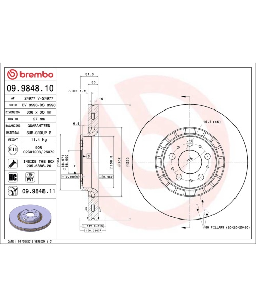 Tarcza wentylowana PVT. Tarcza PVT, w swojej komorze wentylacyjnej, wykorzystuje filary zamiast łopatek. Możliwości chłoona większą odporność na pęknięcia z powodu wysokiej temperatury.